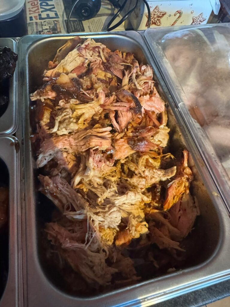 Saftiges Pulled Pork vom Smoker mit perfekter Rauchnote, direkt vor Ort serviert.